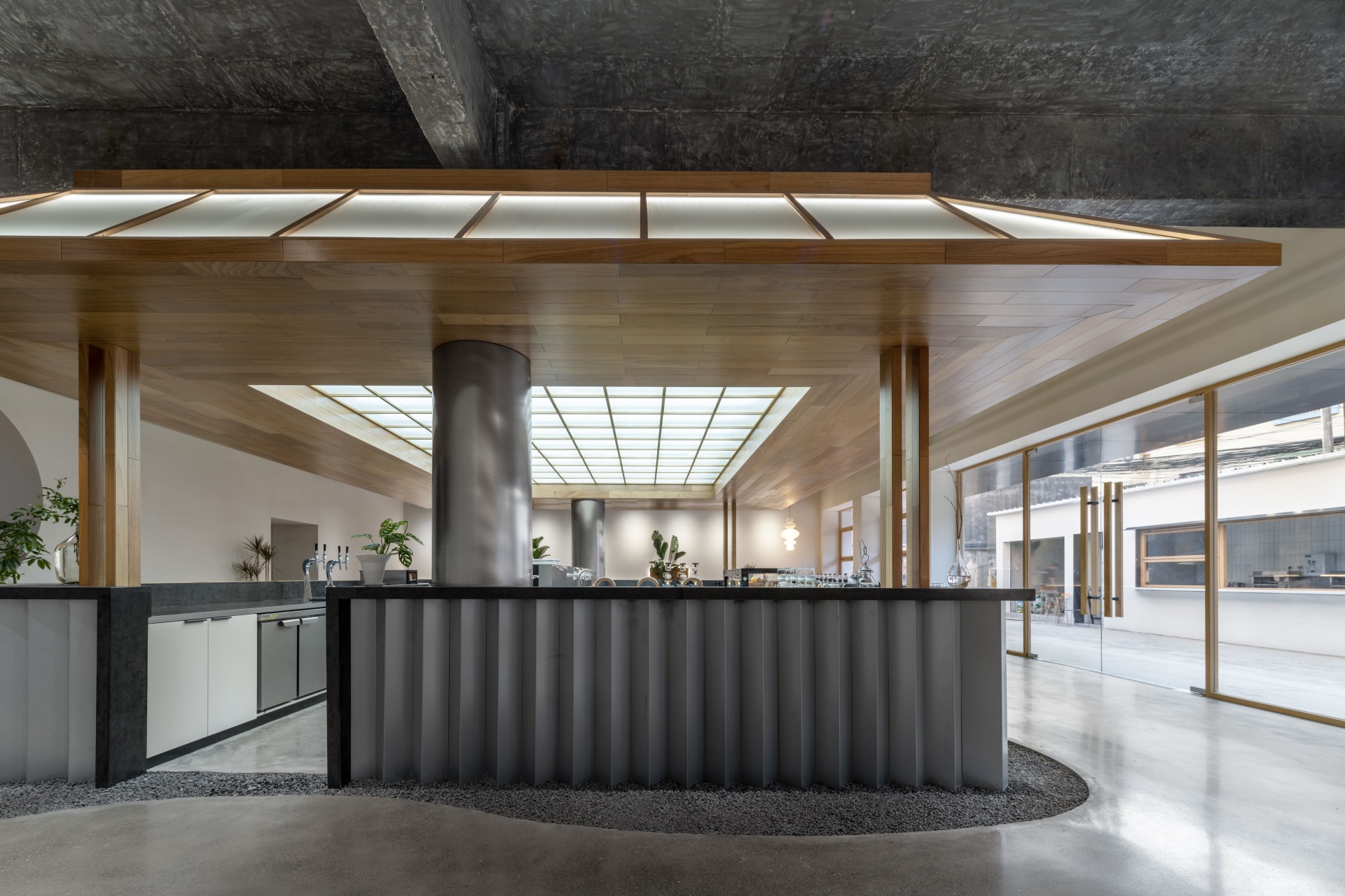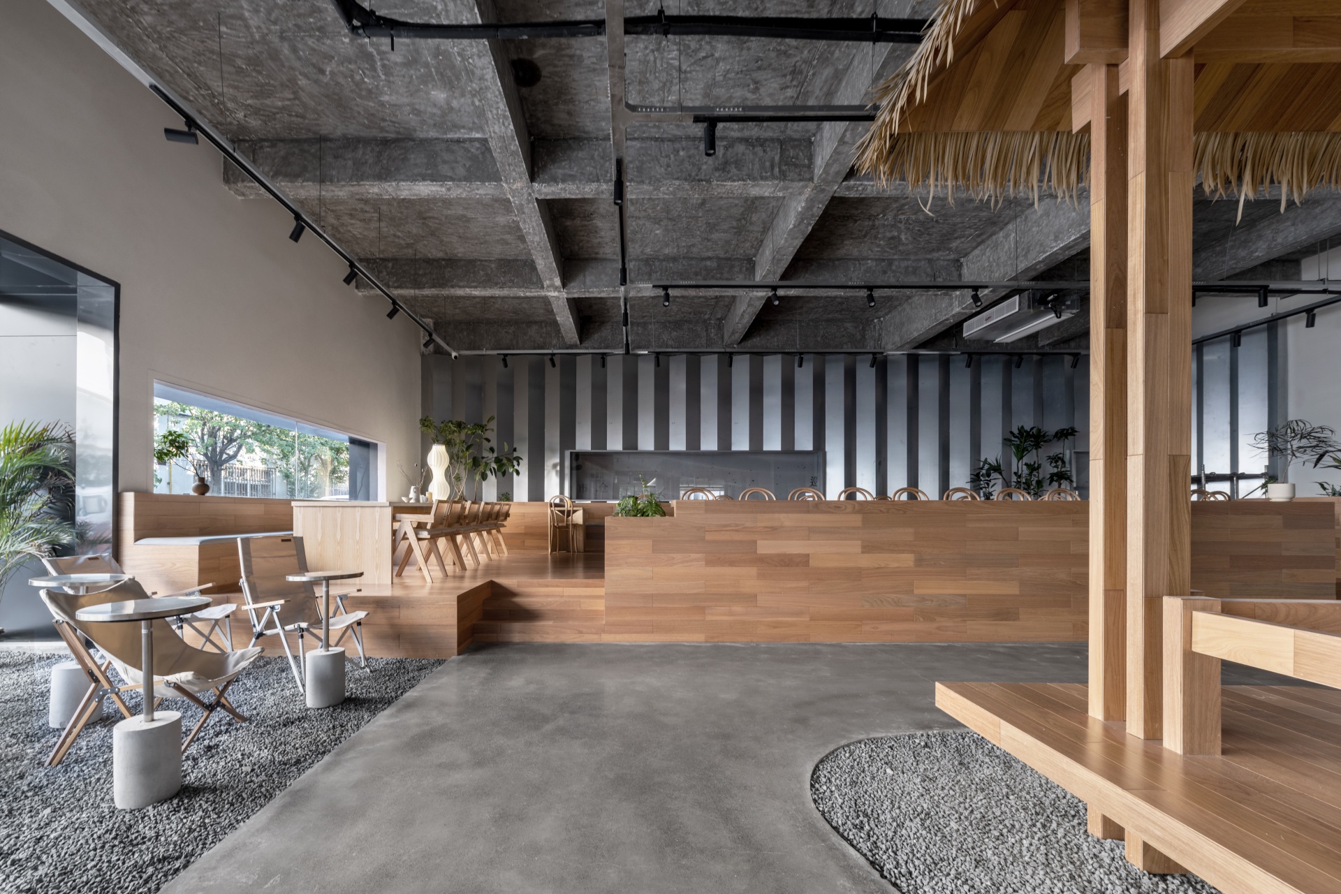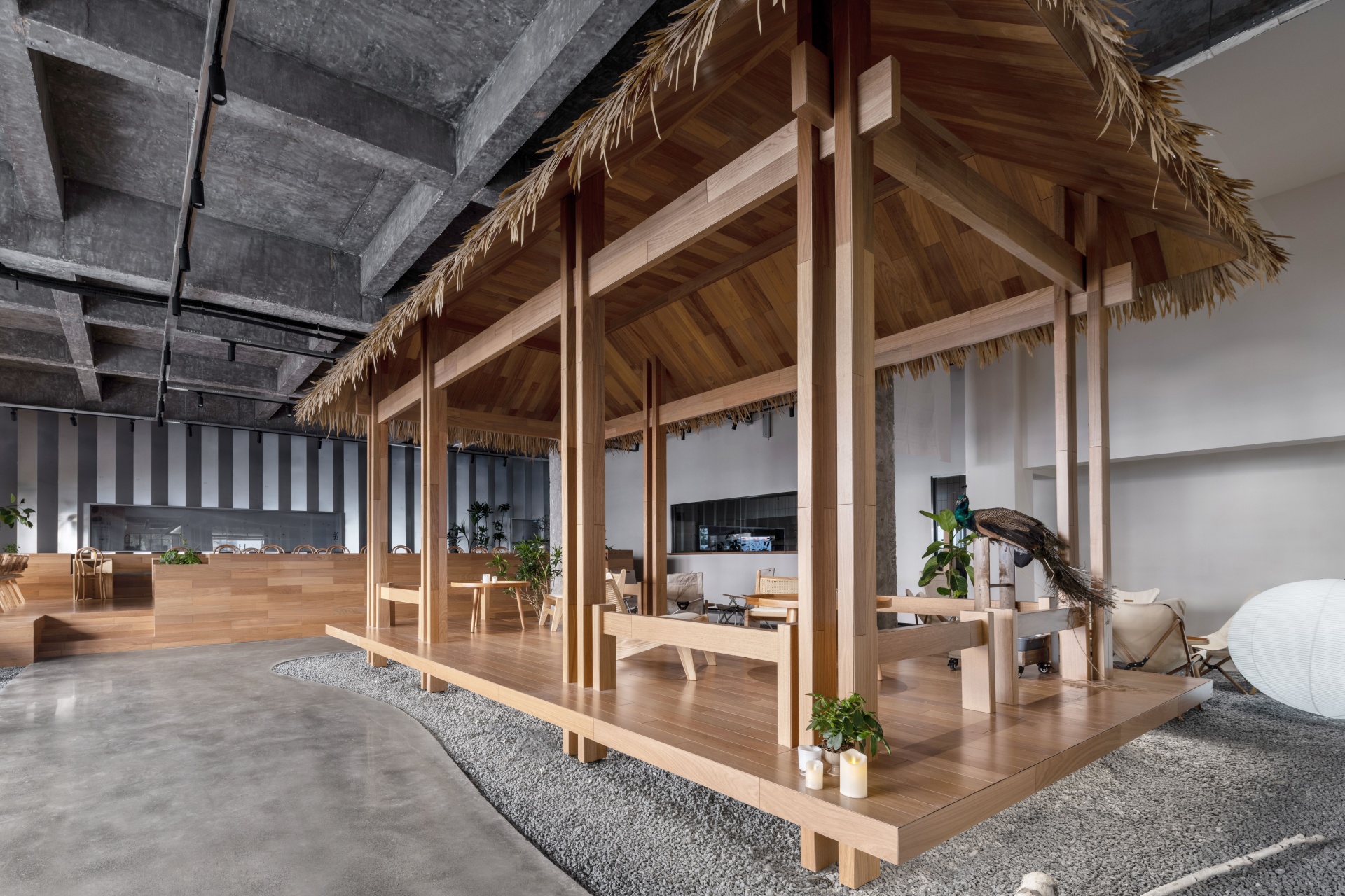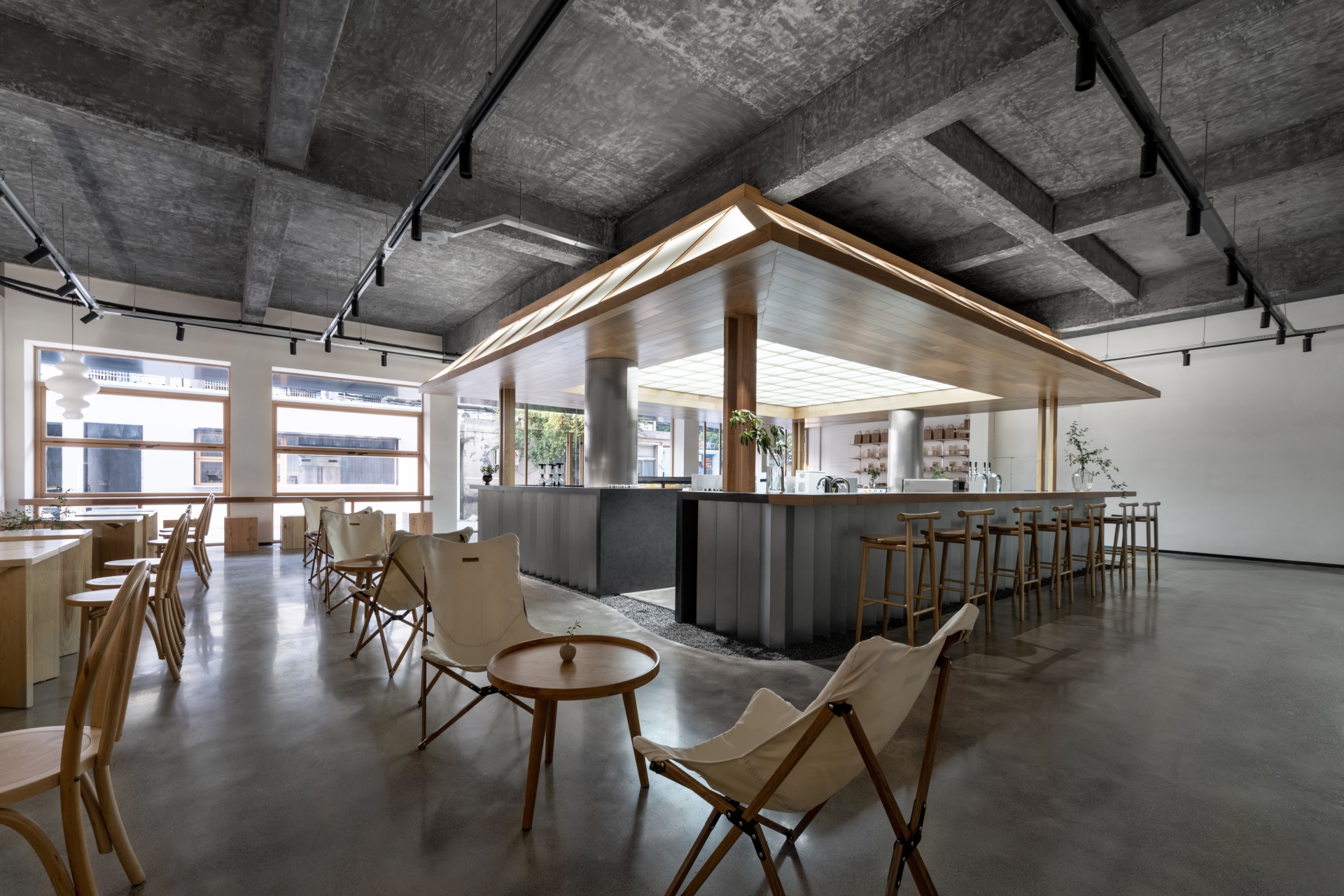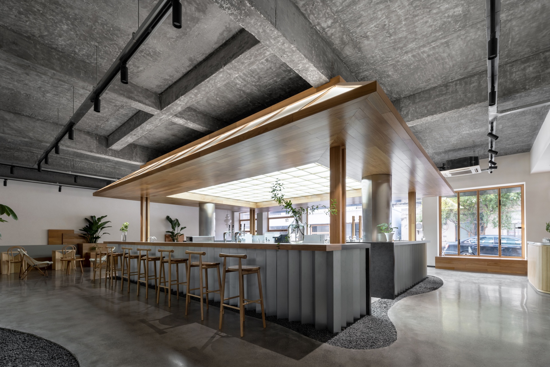 柒设计致力打造一个活力、治愈、社交、休闲的新潮茶饮空间,让原本商业属性薄弱的区域焕发出新的能量,同时激活仓库及周边区域性地块的价值,为原有的区域生命力注入生机。