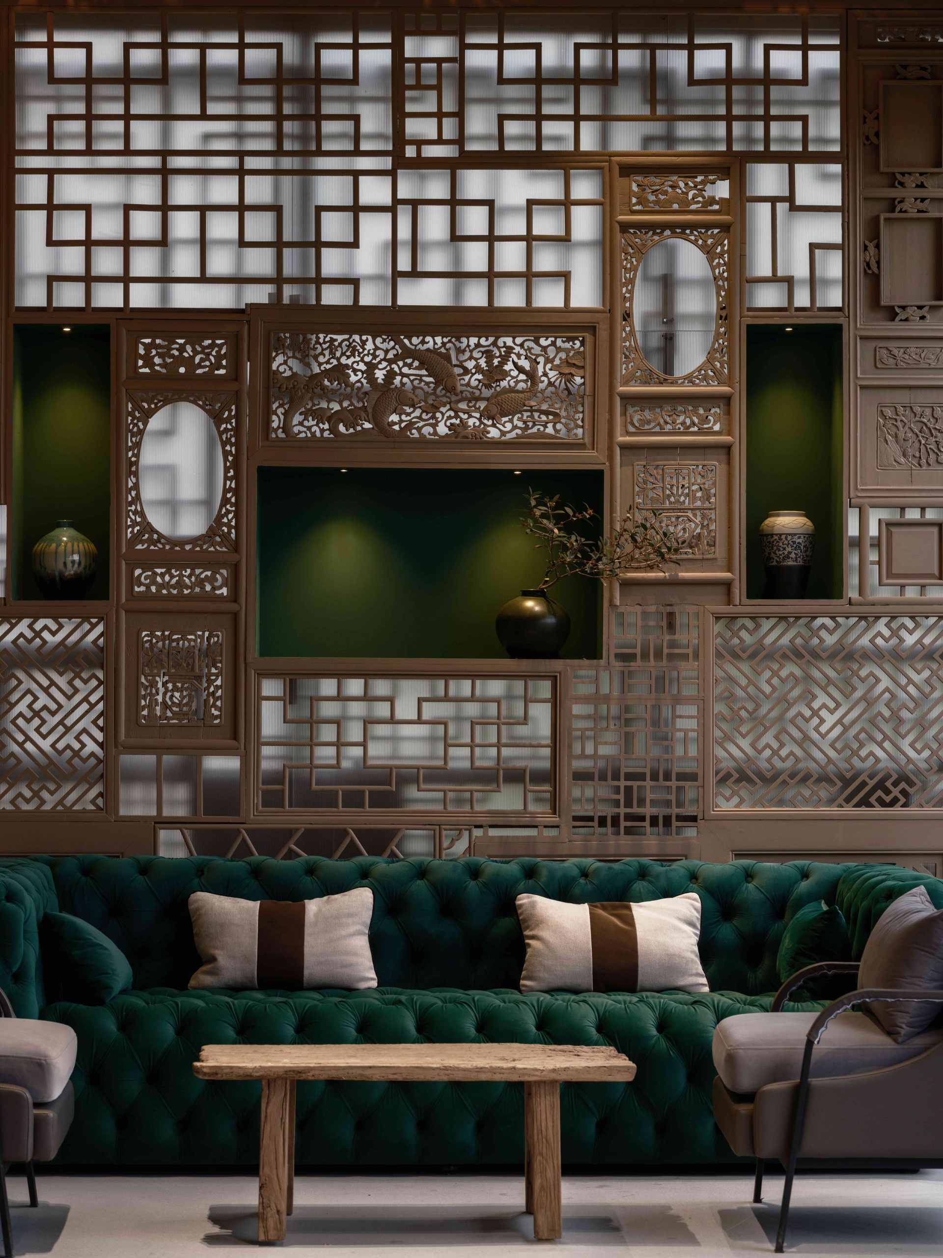 室内设计延续了外部的素雅风格,选用了大量自然材料如木材、石材和竹编,营造出自然与人文相结合的空间感。