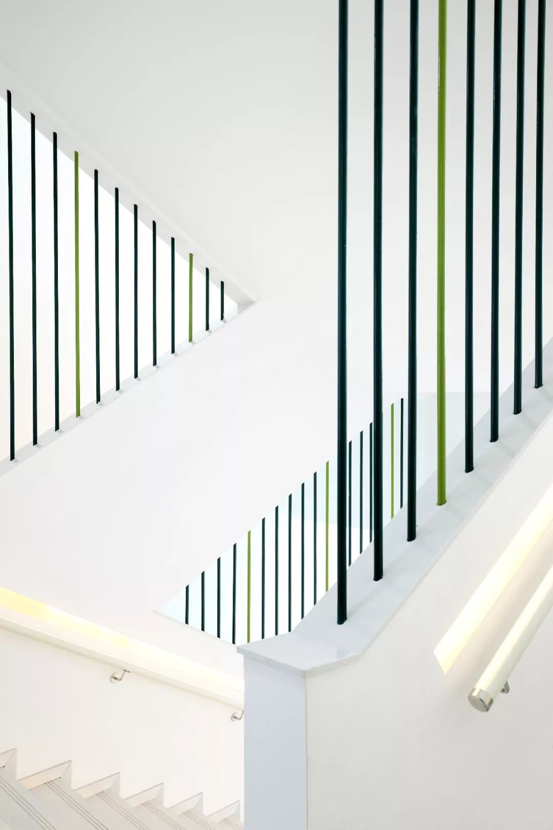 在办公区域和小型休闲讨论区设计师选用了大面积的白色,在绿色等鲜明颜色的辅助下,整个空间干净却不乏味,个性却不夸张,通透明亮又充满活力,给人一种跃动的旋律感。暖光灯带的使用降低了空间因为线条产生的明锐感,为空间增添了一抹浅浅的暖色,让人们在紧张的工作之余缓解压力。