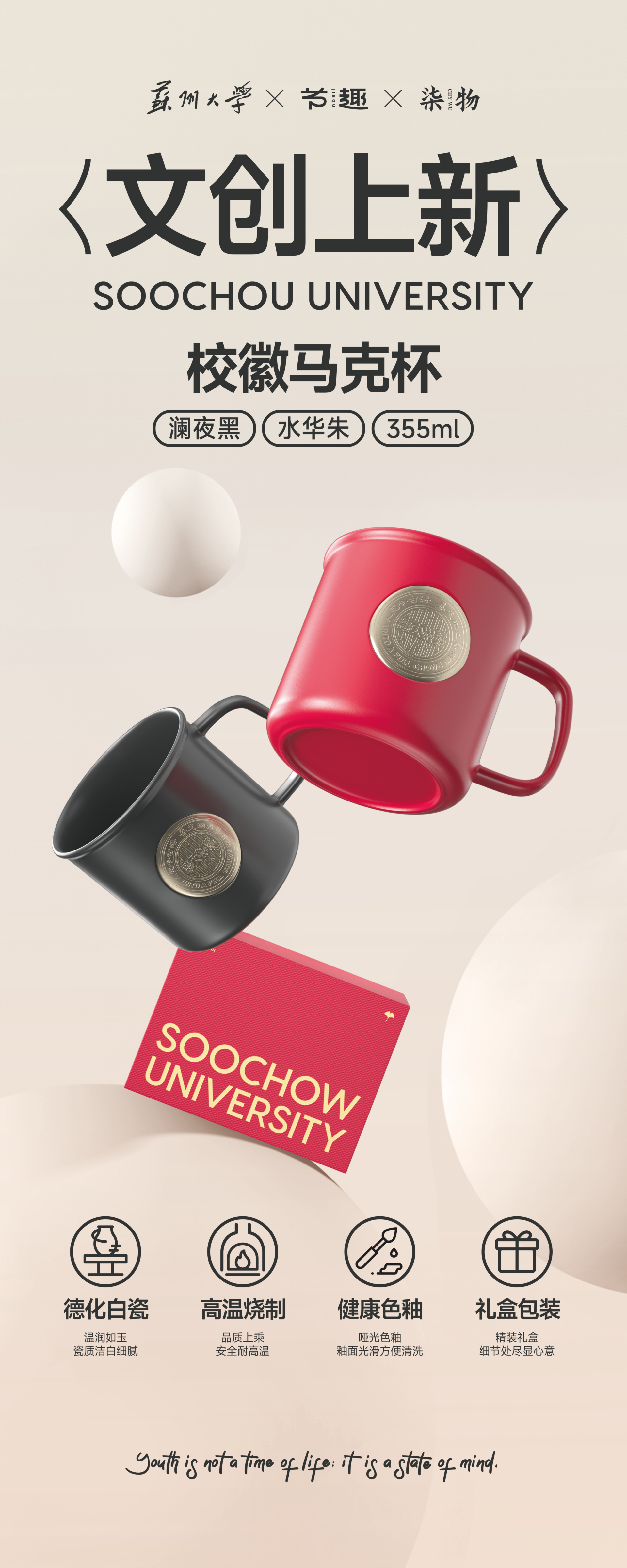 三款产品工艺独特,分别诠释温润、怀旧与俏皮,旨在让使用者在品茶饮水间重温苏大记忆,引发跨越时空的情感共鸣。