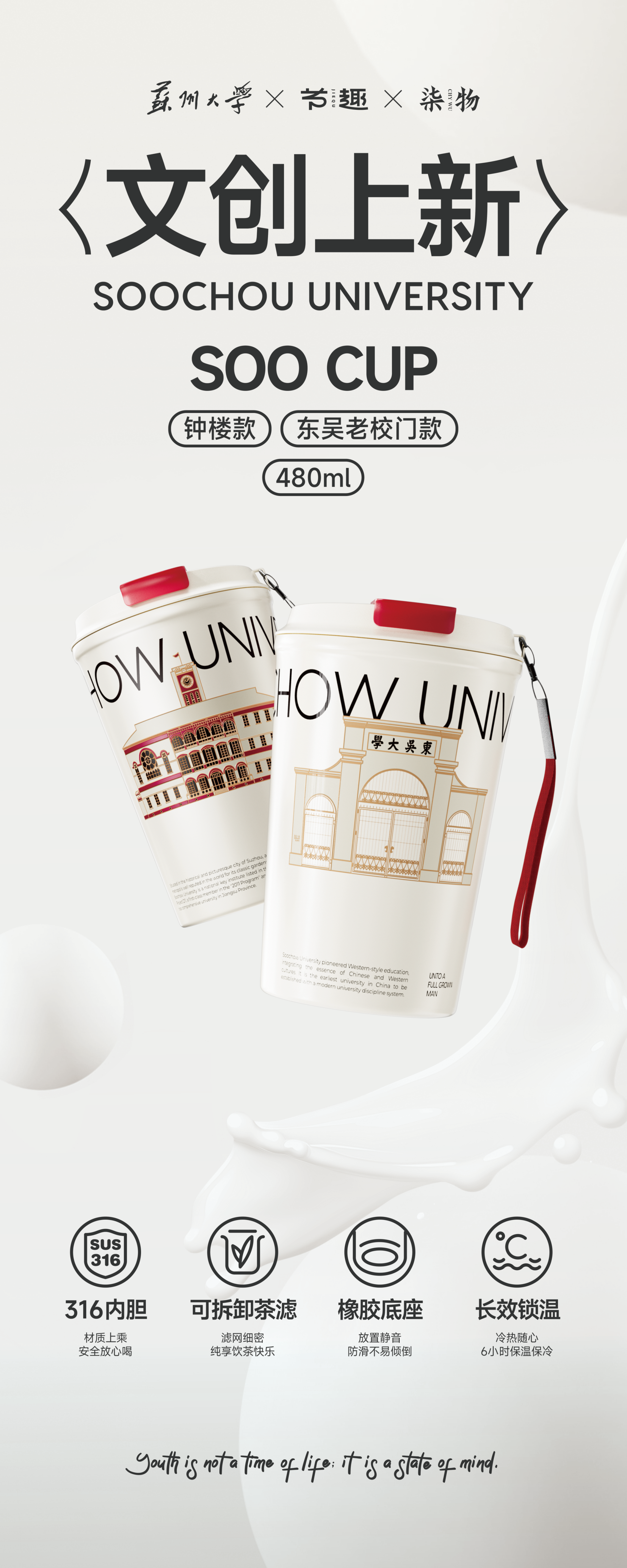 柒设计品牌柒物与苏州大学联名打造三款主题水杯,将校园历史、风景与情感融入实用器物。